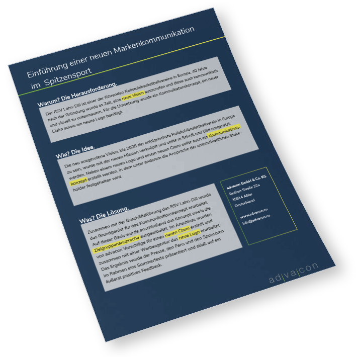 Mit advacon gewinnen unsere Kunden einen Partner, der Herausforderungen klar benennt, Chancen sichtbar macht und gemeinsam mit ihnen eine Kultur des Erfolgs etabliert.